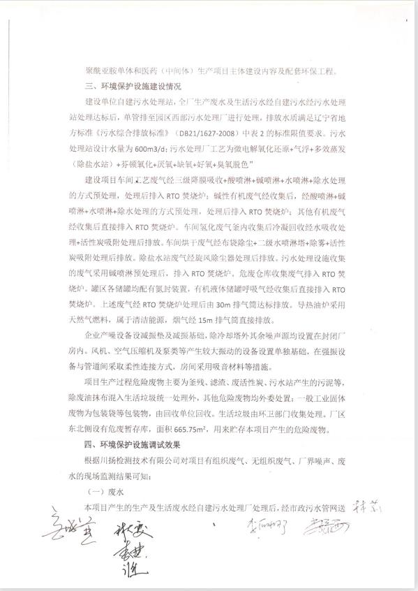 大連新陽光材料科技有限公司 聚酰亞胺單體和醫(yī)藥(中間體)生產(chǎn)項目 竣工環(huán)境保護驗收監(jiān)測報告